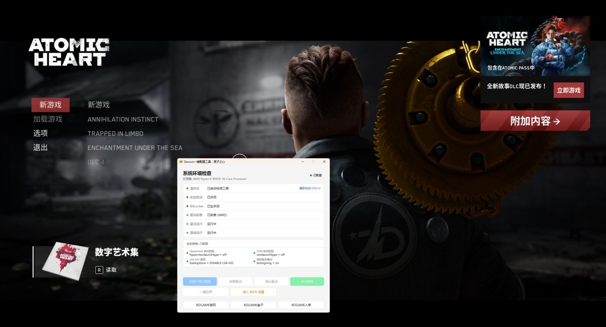 重启电脑后继续打开Denuvo.exe点击 安装驱动 → 启动驱动 → 启动游戏 → 开始玩耍